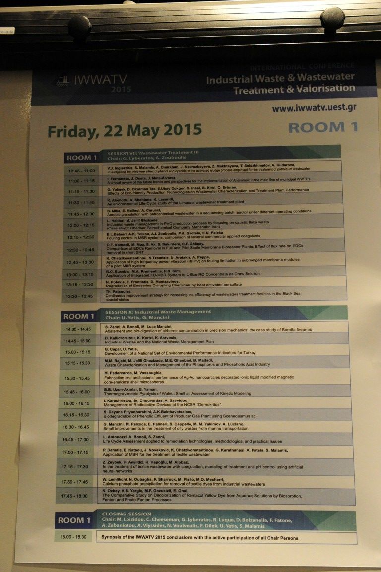International Conference on Industrial Waste & Wastewater Treatment & Valorisation 21-23 May 2015, President Hotel, Athens http://www.iwwatv.uest.gr Photos from the conference